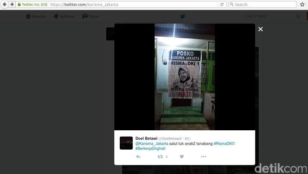Akun Twitter tersebut bernama @Karisma_Jakarta, tetapi tidak dijelaskan maksud dari pemilihan namanya. @Karisma_Jakarta memasang foto Risma dengan warna hitam-putih dan tulisan 'Bekerja Dengan Hati'.